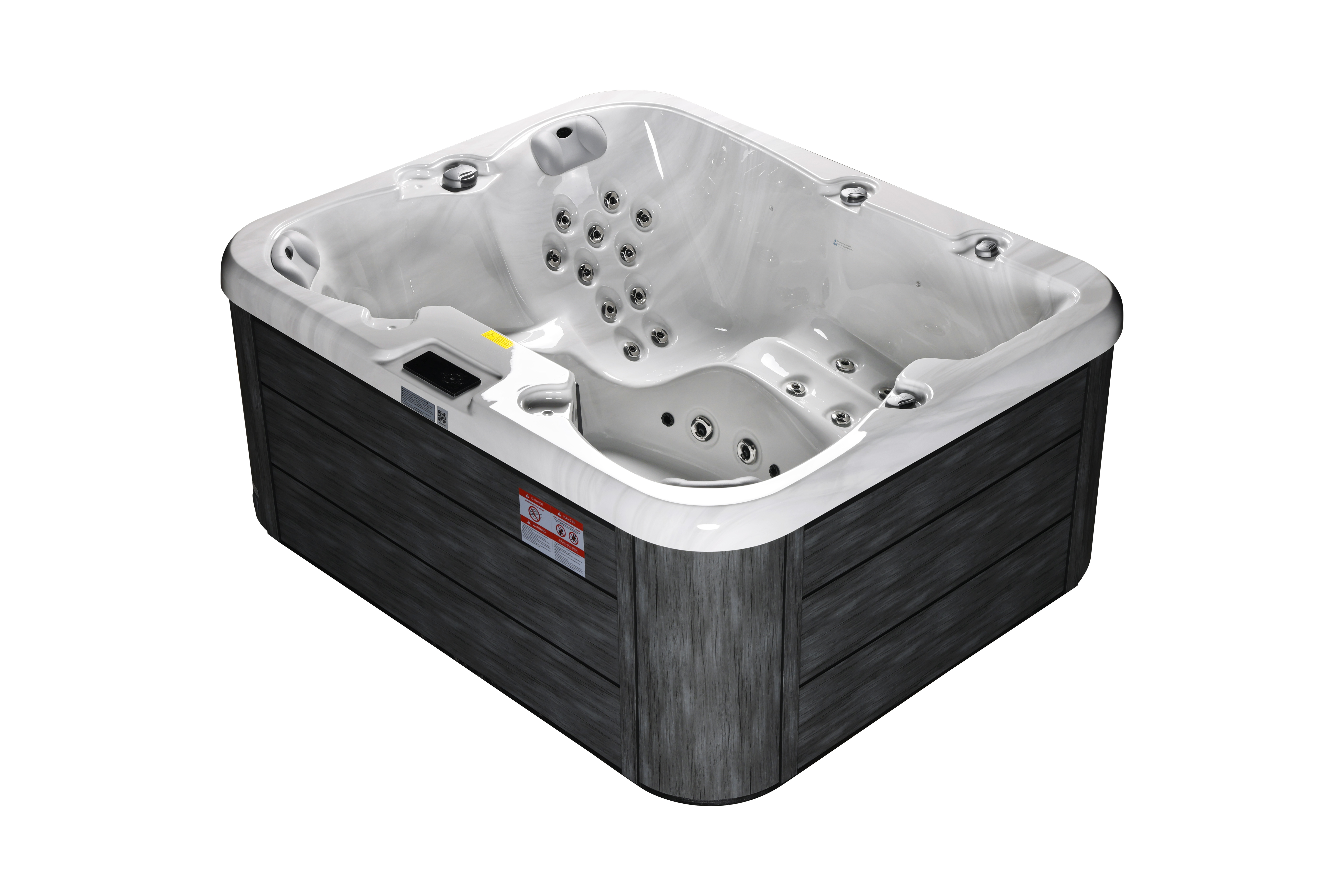 NordicSpa Loki с размером чаши 2,0 x 1,65 м идеально подходит для установки как в помещении, так и на улице. Компактная, но просторная чаша с тремя эргономичными подголовниками комфортно вмещает до трех человек, создавая уютную атмосферу для отдыха и общения.